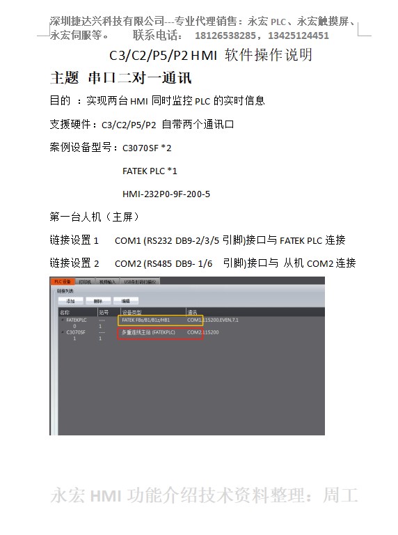 一機兩屏在永宏PLC無多余串口可使用的情況下,用戶需要從不同的地方通過兩臺觸摸屏控制同一臺PLC,