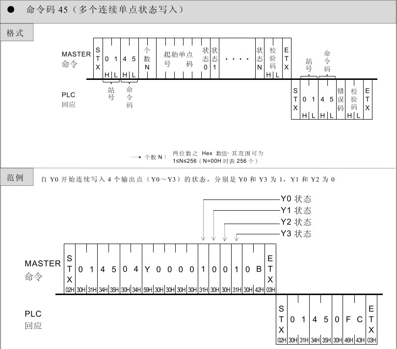 FATEK 臺灣永宏PLC 編程命令碼45.多個連續(xù)單點狀態(tài)寫入