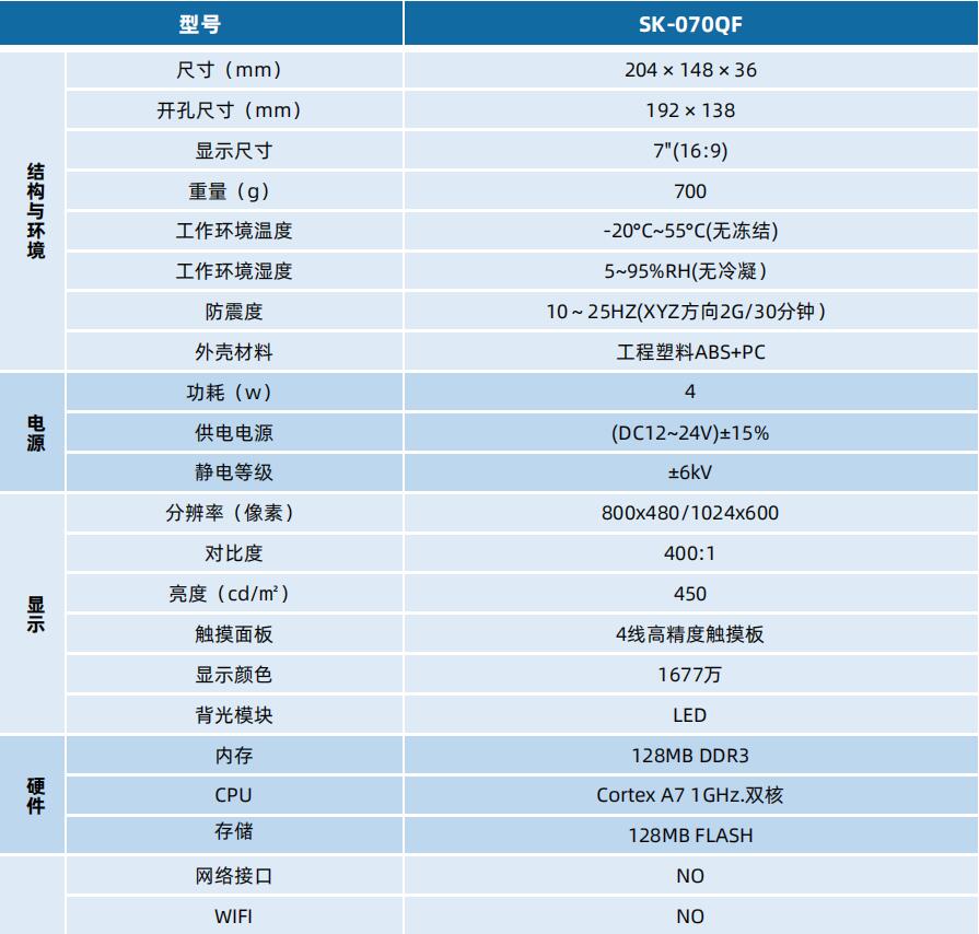 SK-070QF 顯控人機界面 顯控觸摸屏